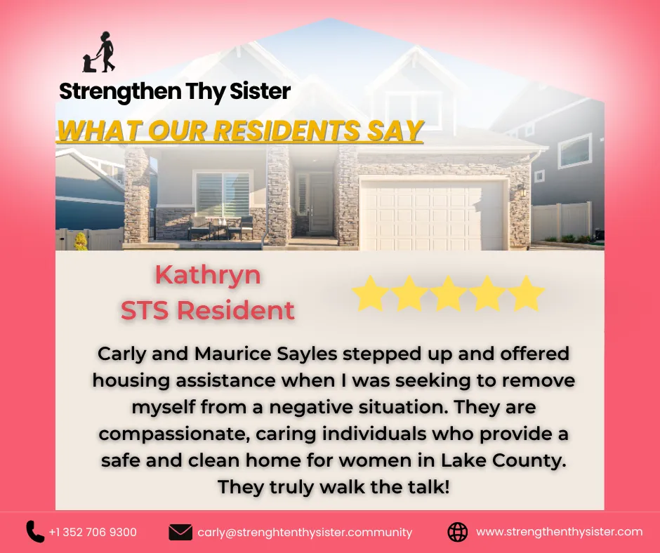 Strengthen Thy Sister, LLC is a For Profit Business created to serve individuals that are in need of safe, clean and affordable shared housing. Strengthen Thy Sister was birthed in 2019 As a women's group meeting at a neighborhood center in Eustis, Florida after leading my now friend, Tina, to Jesus, while doing a food distribution. I Was led to start Strengthen Thy Sister immediately not realizing that I needed them as much as they needed me. As a daughter, Sister, Mother, Wife, Stepmom, and grandmother, I have experienced many of life's disappointments, But God, held me together, healed me, restored my soul and loved me like a loving Heavenly Father would do. He sent certain people to pray over me, encourage me and challenge me too. I held on to the Word of God and He delivered me from my fears, my hurts and Brokenness. Now it is my turn to help others who suffer in silence or out loud to overcome the pains of life so you too can live that Abundant Life that Jesus came that we may live, Victoriously.